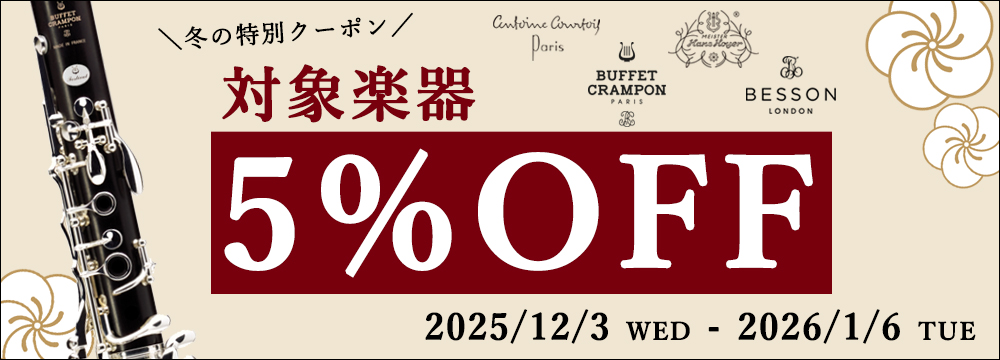 対象楽器がクーポン利用で5%オフ!冬のスペシャルクーポン 管楽器専門店 永江楽器
